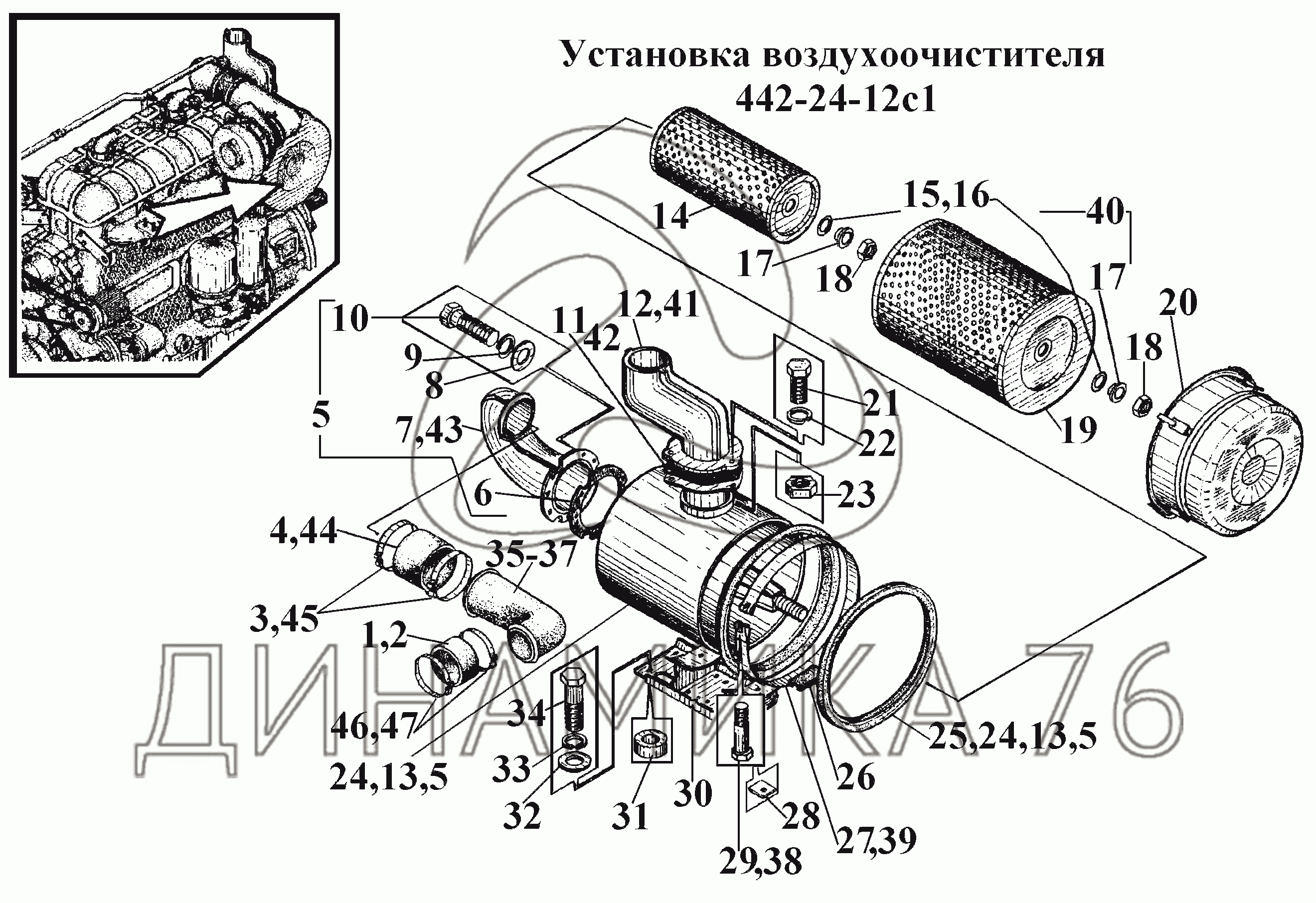 Схемы запчастей предназначены для справочных целей! Мы продаем не все запчасти от Установка воздухоочистителя 442-24-12с1 на ВТ-100Д, представленные в этом списке.