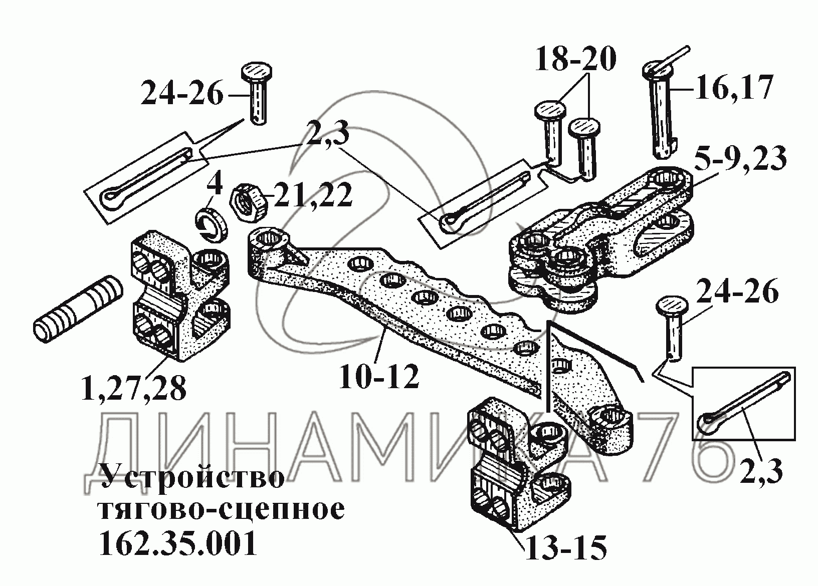 Схемы запчастей предназначены для справочных целей! Мы продаем не все запчасти от Устройство тягово-сцепное 162.35.001 на ВТ-100Д, представленные в этом списке.