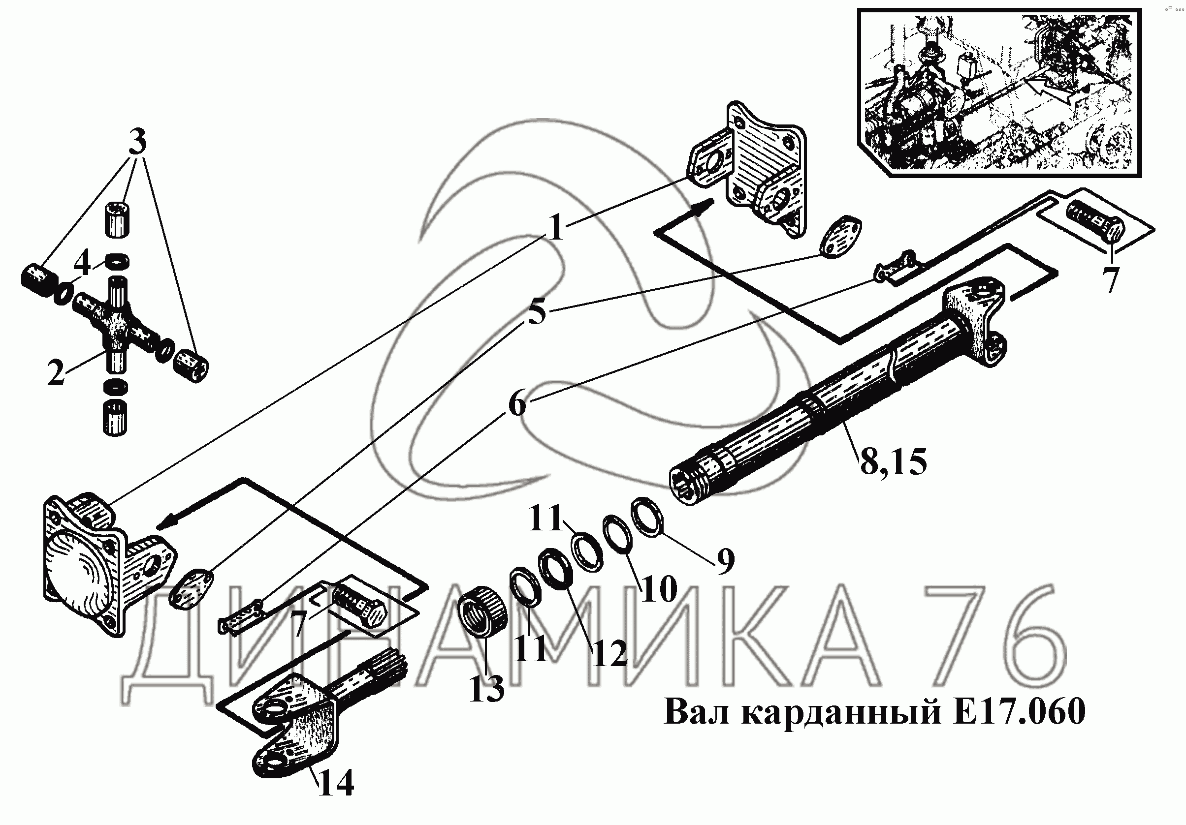 Перечень комплектующих от Вал карданный Е17.060 на ВТ-100Д