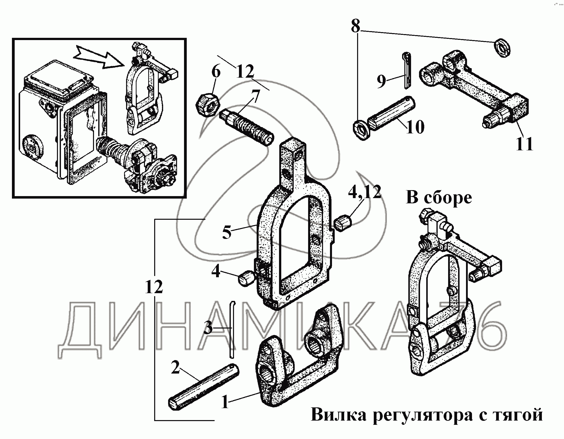 Вилка регулятора с тягой на ВТ-100Д (до 2015 г.)
