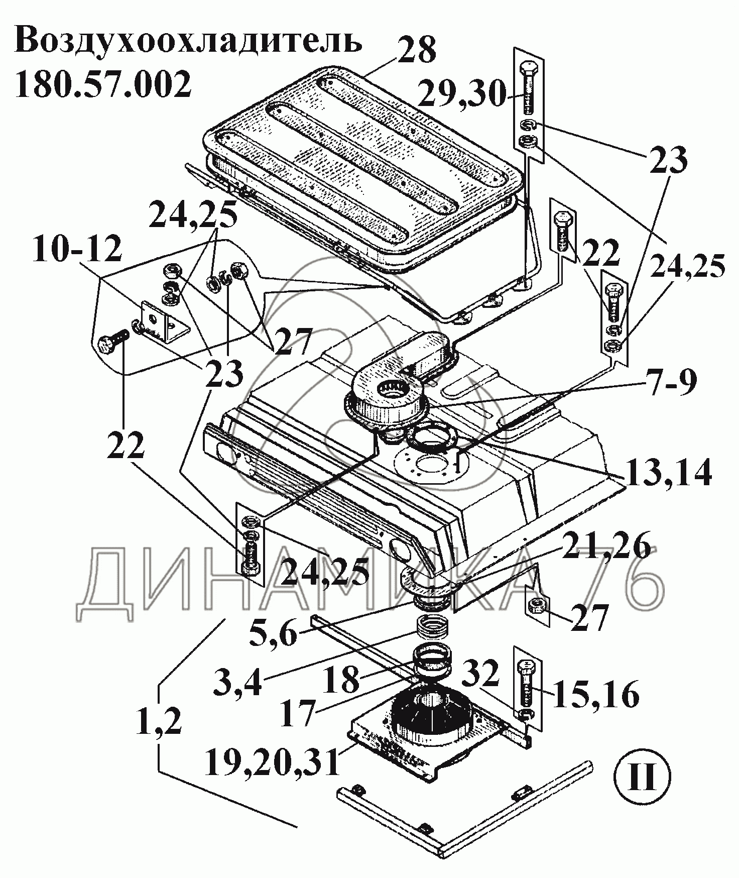 Перечень комплектующих от Воздухоохладитель 180.57.002 (3) на ВТ-100Д