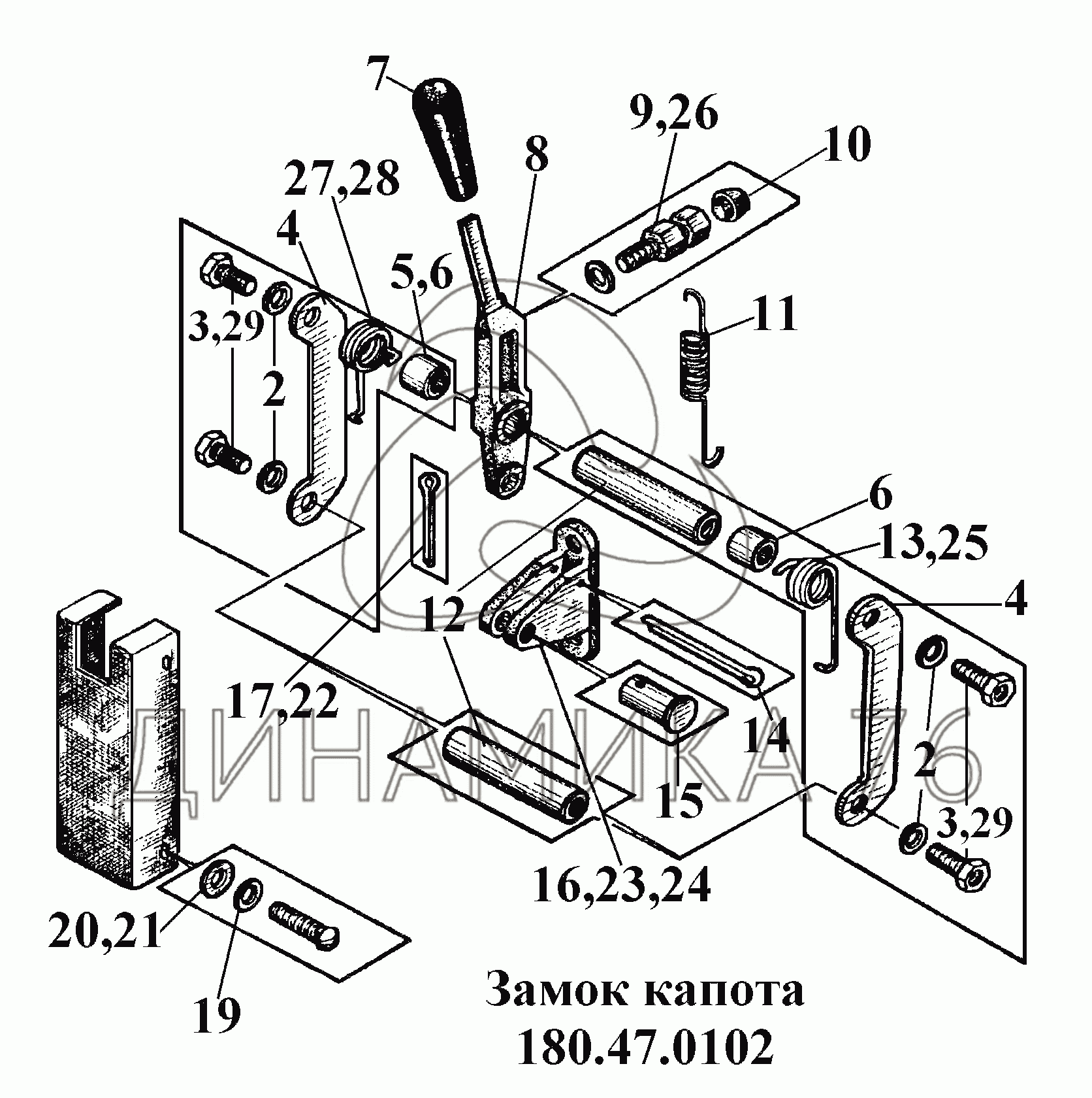 Перечень комплектующих от Замок капота на ВТ-100Д