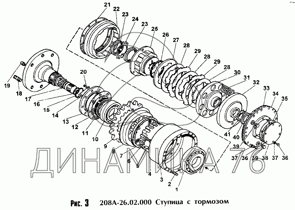 Перечень комплектующих от Ступица с тормозом на Амкодор-208А