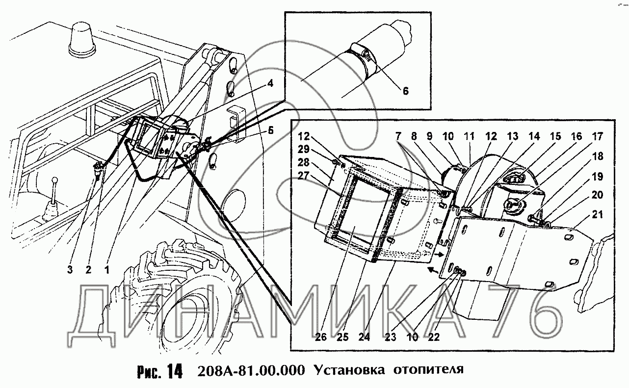 Установка отопителя — Амкодор-208А: