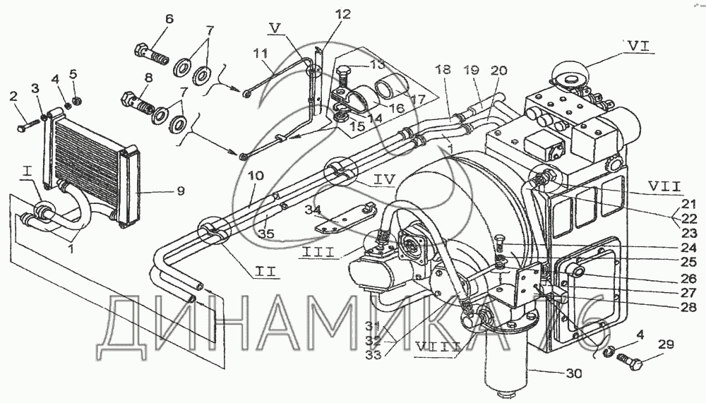 Перечень комплектующих от Гидросистема ГМП на Амкодор-327 (ТО-18Д)