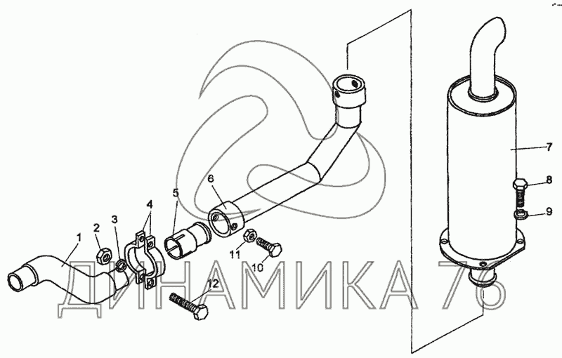 Перечень комплектующих от Глушитель на Амкодор-327 (ТО-18Д)