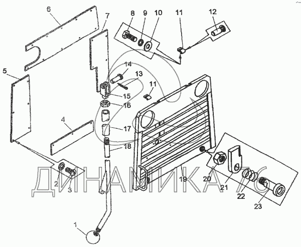 Перечень комплектующих от Облицовка на Амкодор-327 (ТО-18Д)