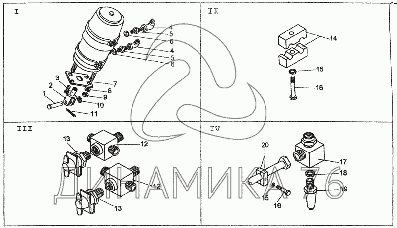Перечень комплектующих от Пневмосистема на Амкодор-327 (ТО-18Д)