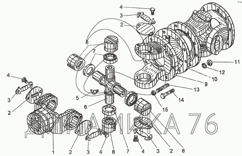 Перечень комплектующих от Вал карданный на Амкодор-327 (ТО-18Д)