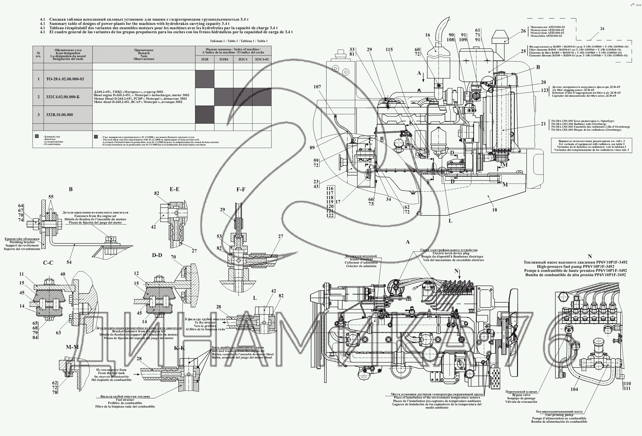 Силовая установка ТО-28А.02.00.000-03 (для погрузчика АМКОДОР 332В, применяемая до 01.12.08 г.) — Амкодор-332B, 332B4: