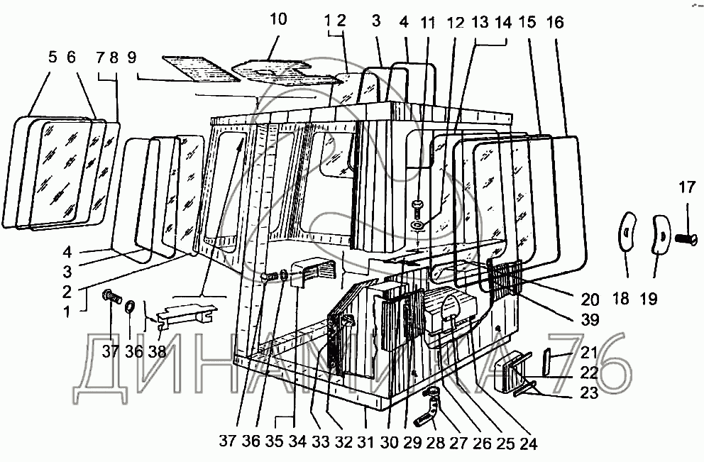 Перечень комплектующих от Кабина на Амкодор-333 (ТО-18Б)