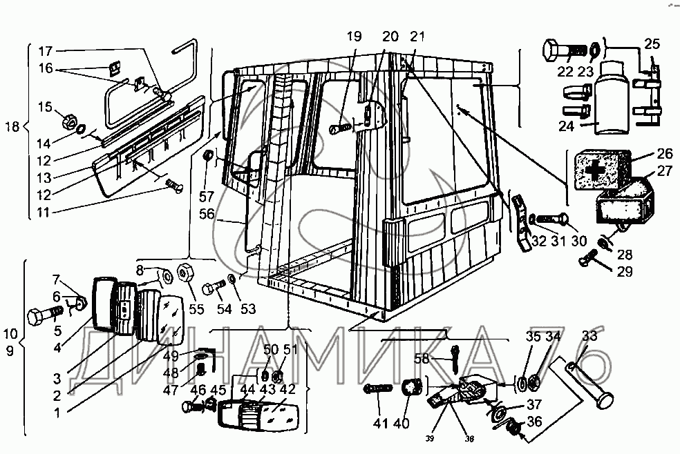 Перечень комплектующих от Кабина на Амкодор-333 (ТО-18Б)