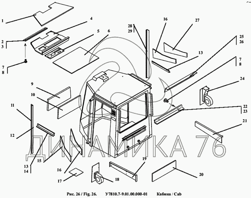 Перечень комплектующих от Кабина на Амкодор-333В (ТО-18Б3)