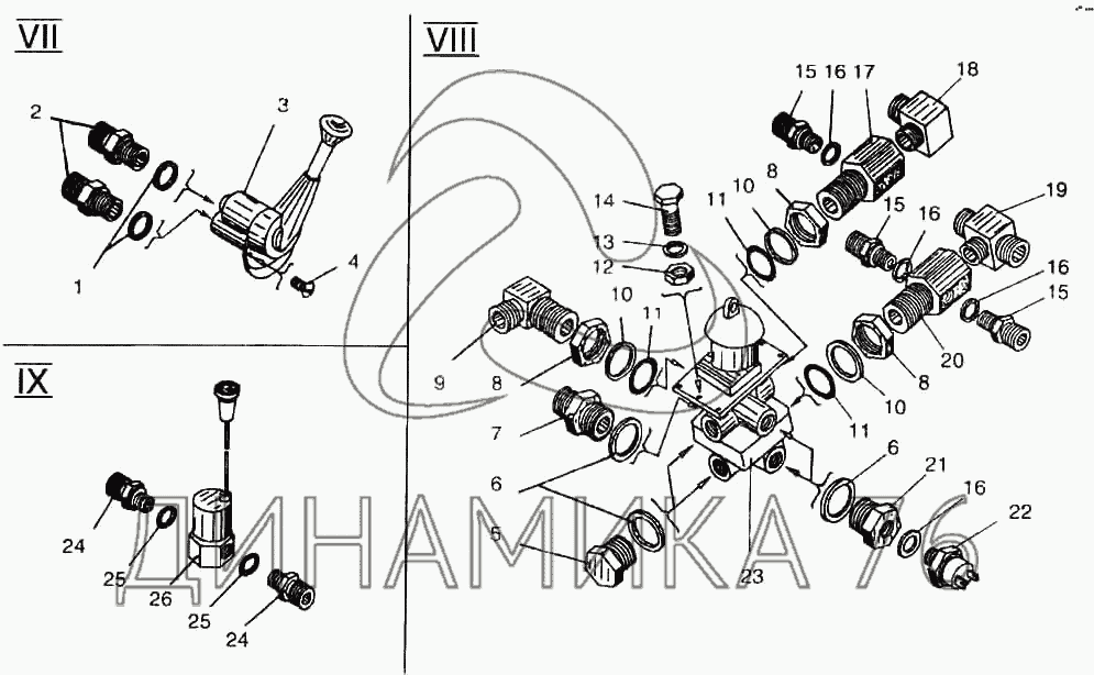 Перечень комплектующих от Пневмосистема на Амкодор-342 (ТО-28)
