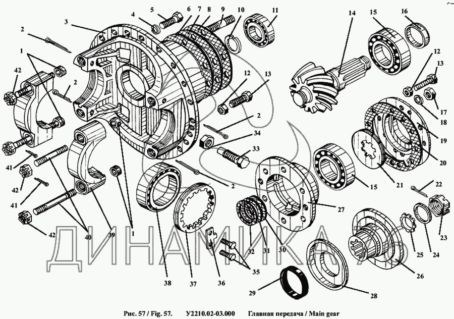 Перечень комплектующих от Главная передача на Амкодор-342А (ТО-28А)