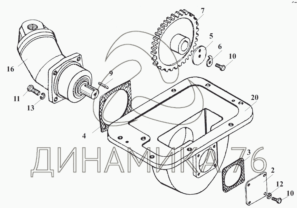 Перечень комплектующих от Редуктор отбора мощности на аварийный насос руля ТО-18.03.01.000-01 на Амкодор-342В, 342С4, 342Р