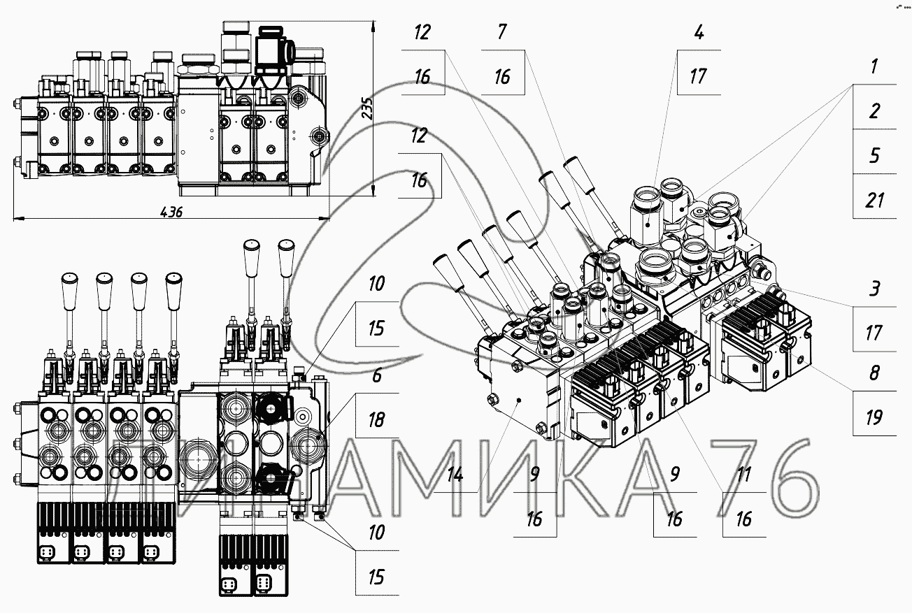 Схемы запчастей предназначены для справочных целей! Мы продаем не все запчасти от Гидрораспределитель 352СА.46.00.050 на Амкодор-352СА, представленные в этом списке.