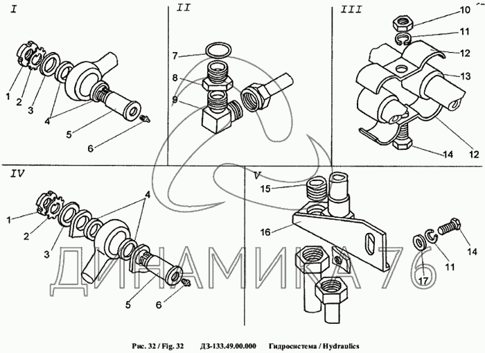 Перечень комплектующих от Гидросистема на Амкодор-702В (ТО-49-40)