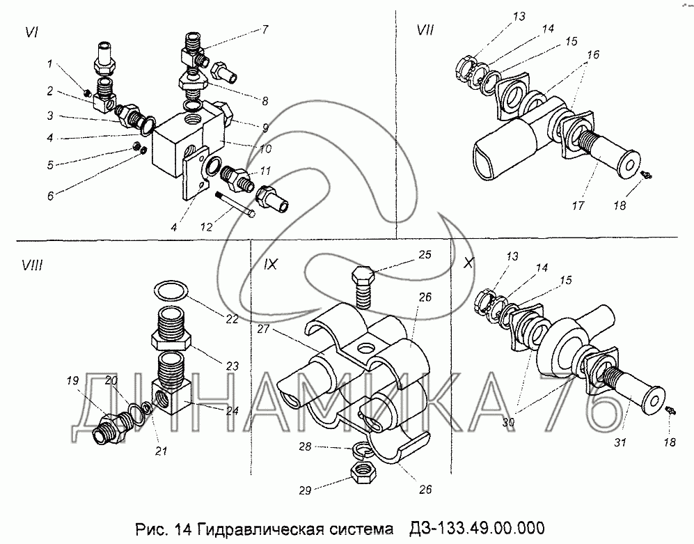 Перечень комплектующих от Гидравлическая система на Амкодор-91 (ДЗ-133ЭЦ)