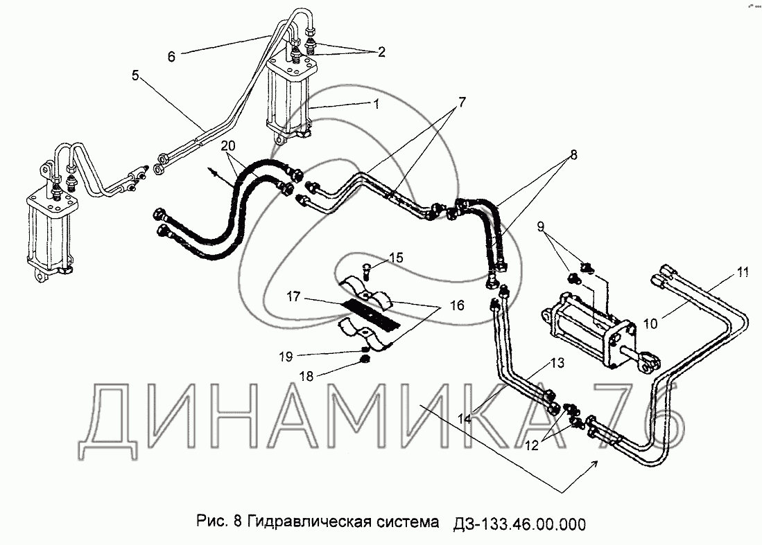 Перечень комплектующих от Гидравлическая система на Амкодор-91 (ДЗ-133ЭЦ)