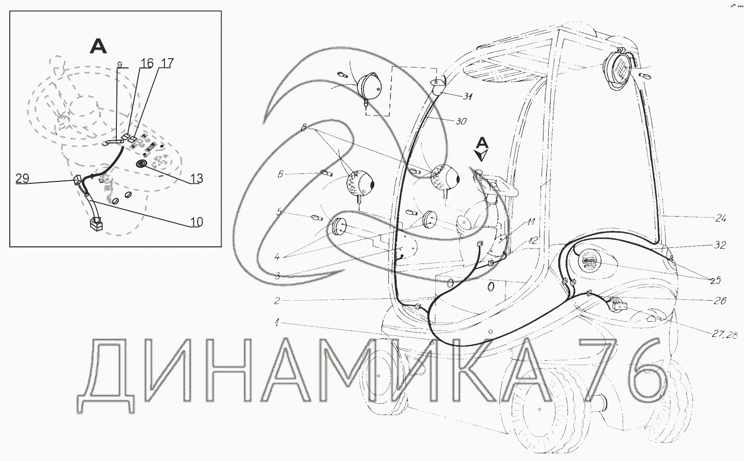 Перечень комплектующих от Электрооборудование дополнительное на Амкодор-Е16
