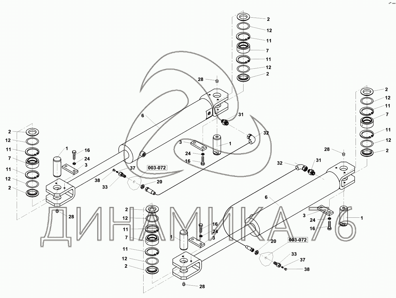 Перечень комплектующих от Steer cylinder на ASC 100