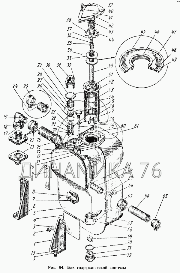 Перечень комплектующих от Бак гидравлической системы на Т-4А