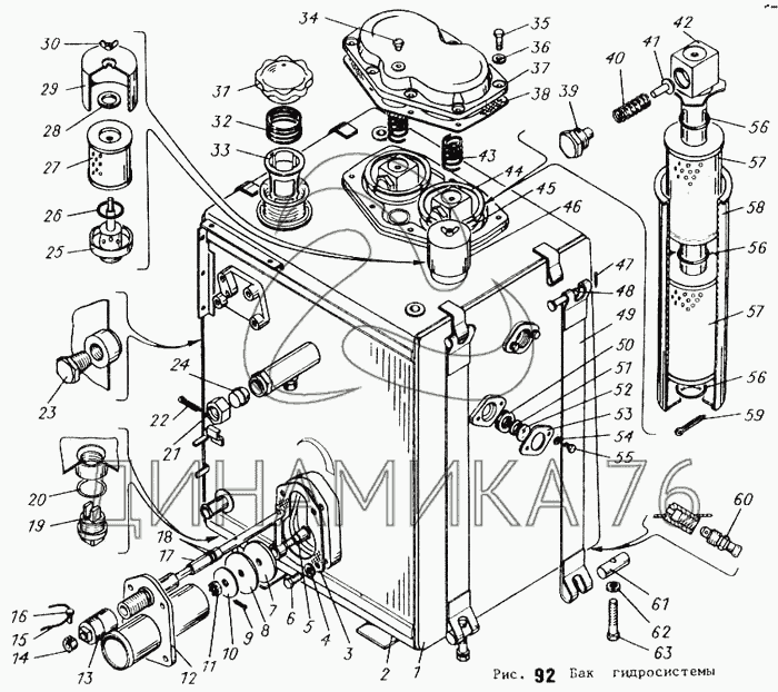 Перечень комплектующих от Бак гидросистемы на ТТ-4М