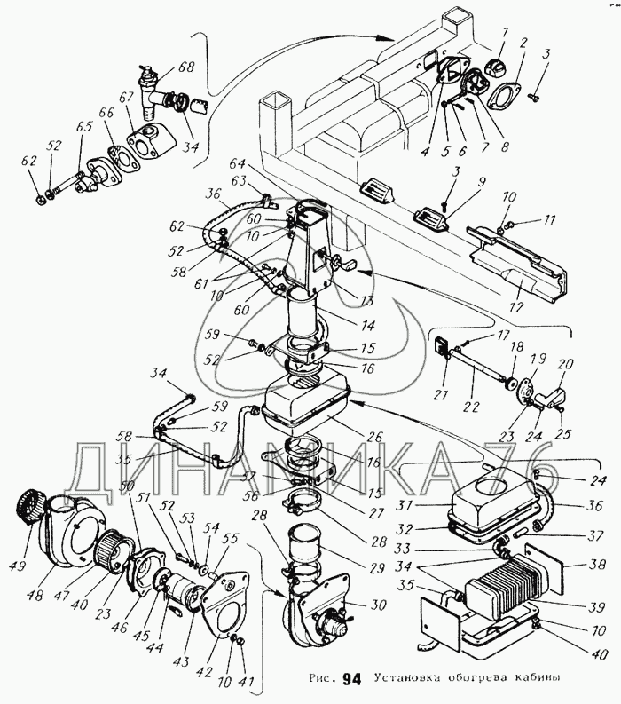Перечень комплектующих от Установка обогрева кабины на ТТ-4М