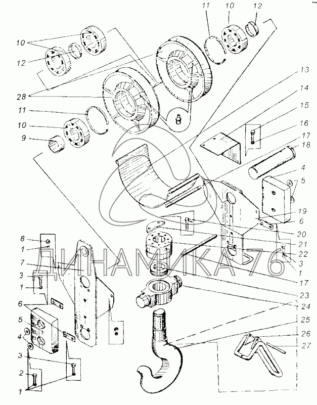 Перечень комплектующих от Крюковая обойма КС-3577.63.300 на КС-3577