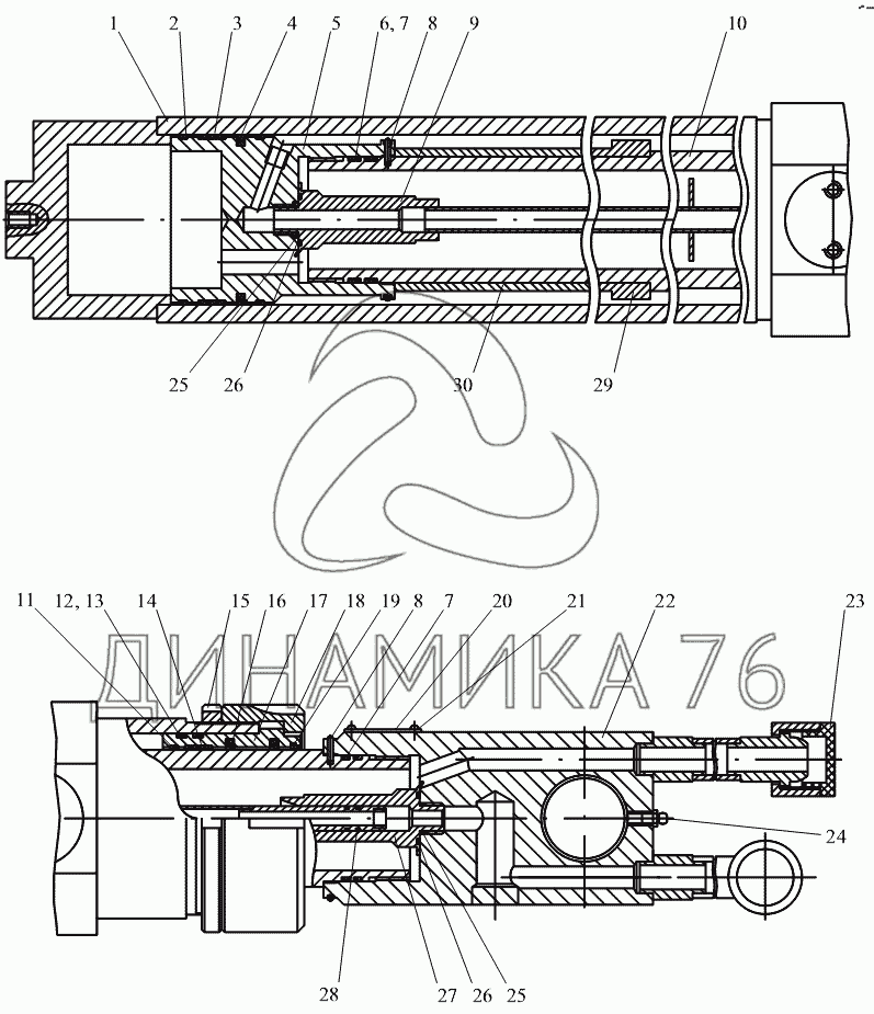 Гидроцилиндр телескопирования — КС-45717К-1 (вариант):