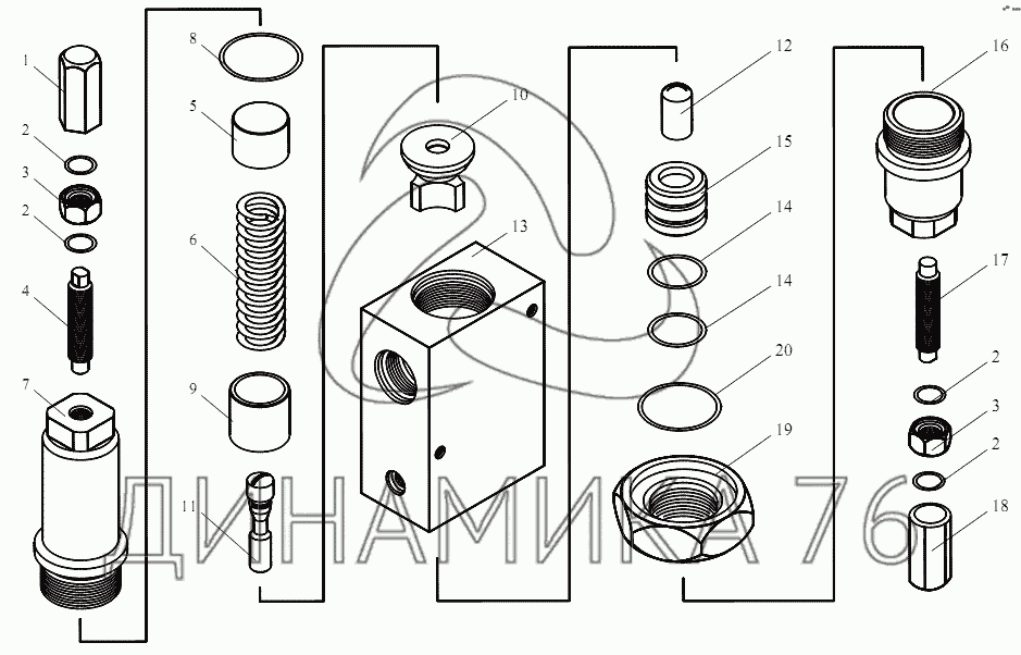 Перечень комплектующих от Клапан обратный управляемый на КС-45717К-1 (вариант)