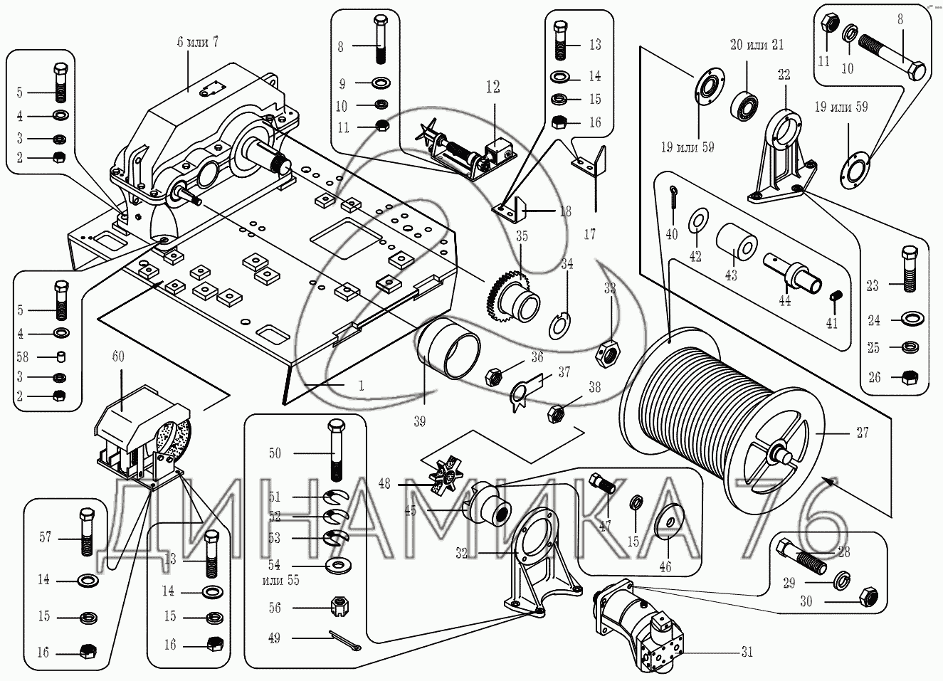 Перечень комплектующих от Лебедка грузовая на КС-45717К-1 (вариант)