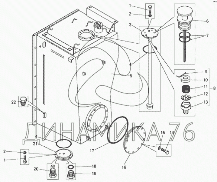 Перечень комплектующих от Бак топливный на БелАЗ-7822