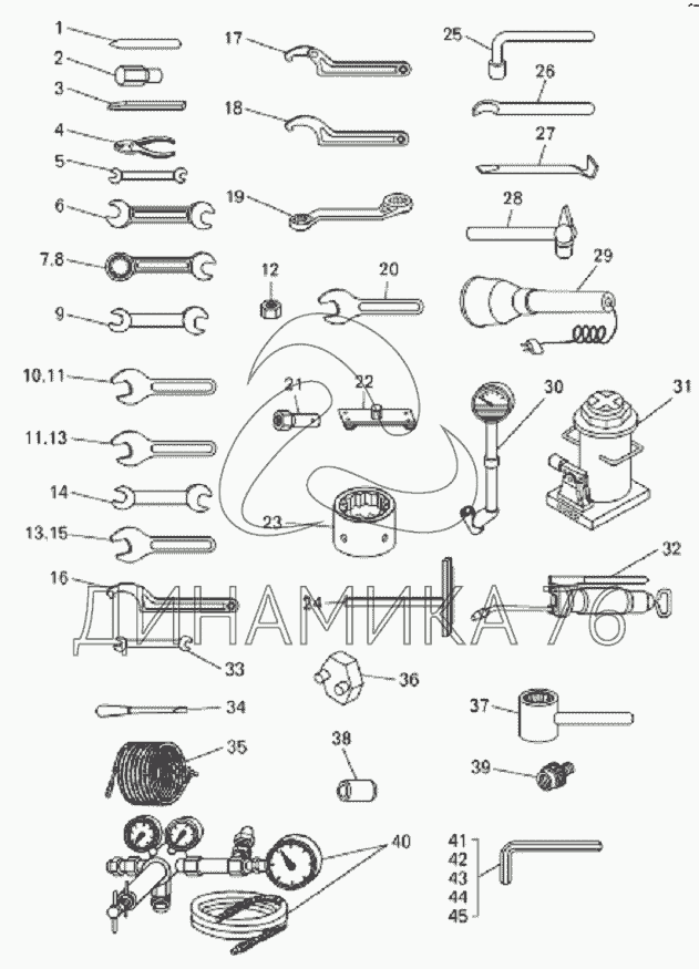 Перечень комплектующих от Инструмент, принадлежности и приспособления на БелАЗ-7822