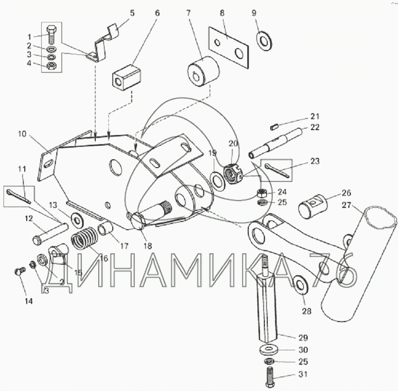 Перечень комплектующих от Колонка рулевая с кронштейном на БелАЗ-7822