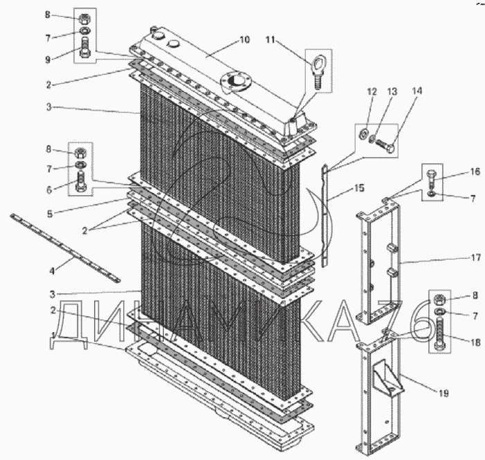 Схемы запчастей предназначены для справочных целей! Мы продаем не все запчасти от Радиатор на БелАЗ-7822, представленные в этом списке.