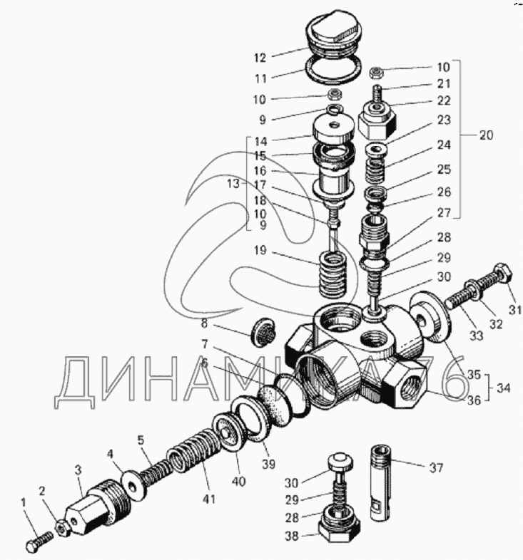 Перечень комплектующих от Регулятор давления на БелАЗ-7822