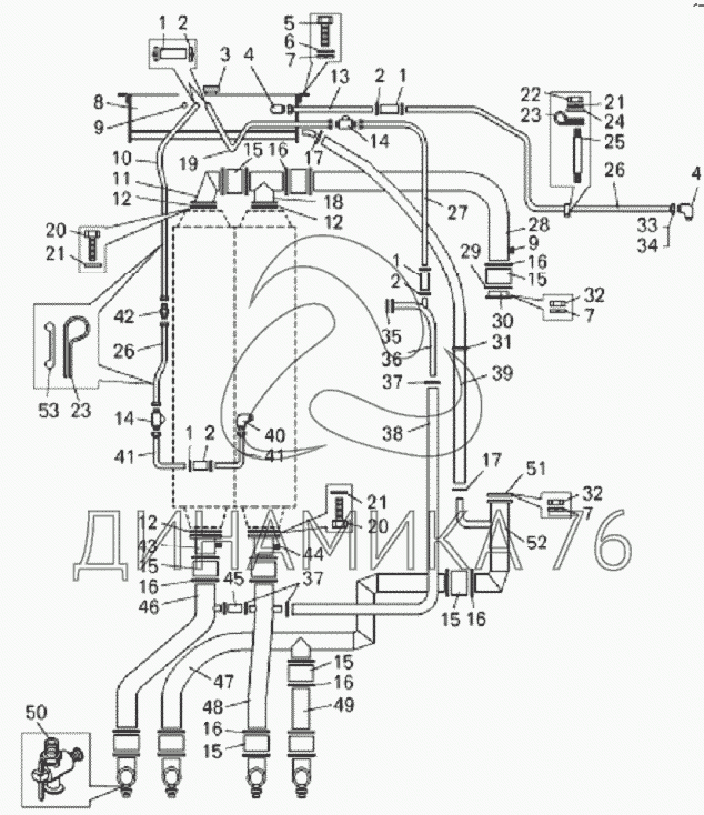 Перечень комплектующих от Трубопроводы системы охлаждения погрузчика БелАЗ-7822 на БелАЗ-7822