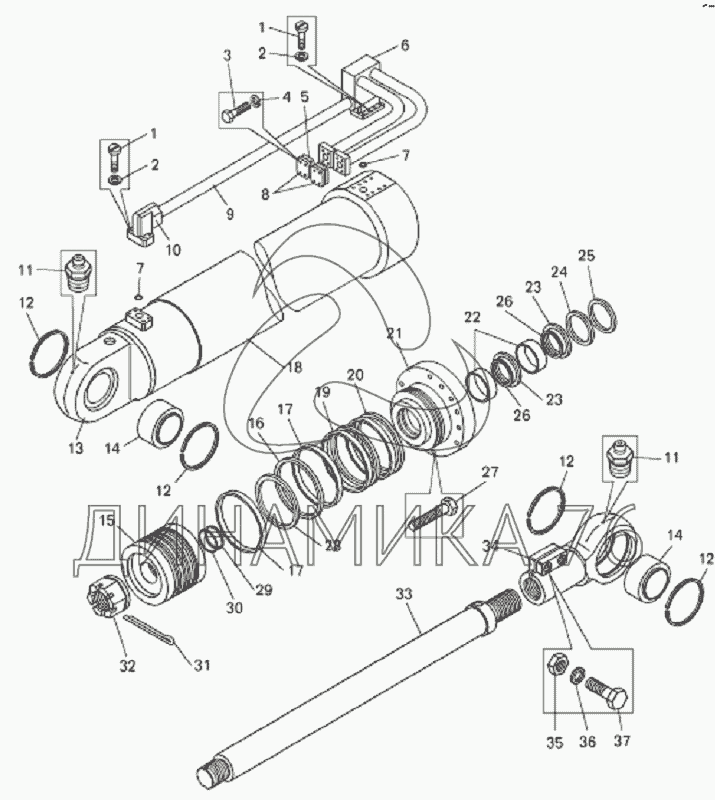 Перечень комплектующих от Цилиндр поворота ковша на БелАЗ-7822