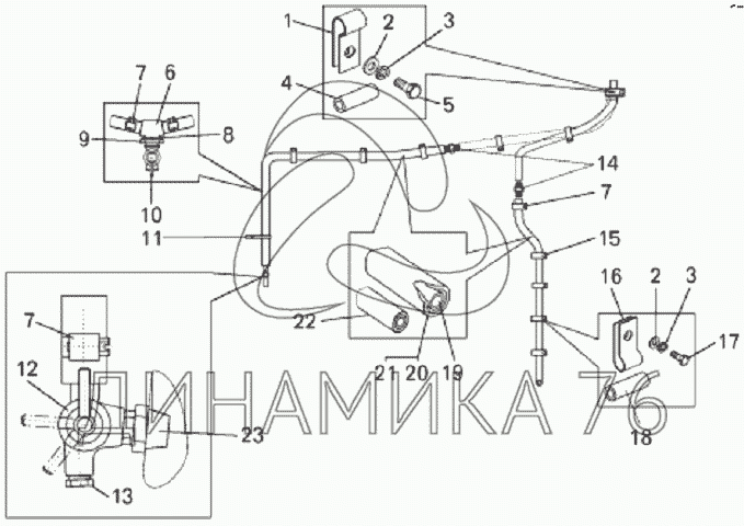 Перечень комплектующих от Установка трубопроводов отопителя на БелАЗ-7822