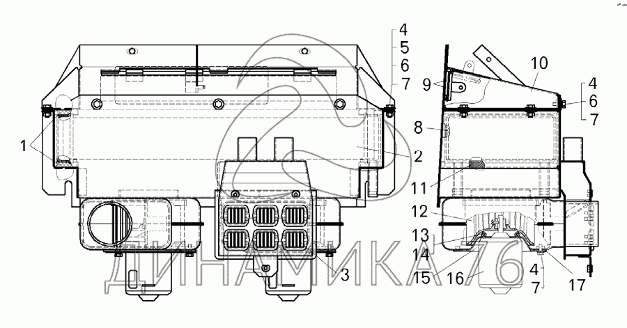 Перечень комплектующих от Отопитель на БелАЗ-7822