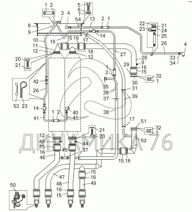 Перечень комплектующих от Трубопроводы системы охлаждения погрузчика БелАЗ-7822 на БелАЗ-7822