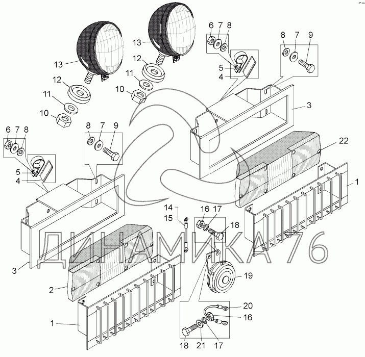 Перечень комплектующих от Установка задних фар и фонарей на БелАЗ-7822