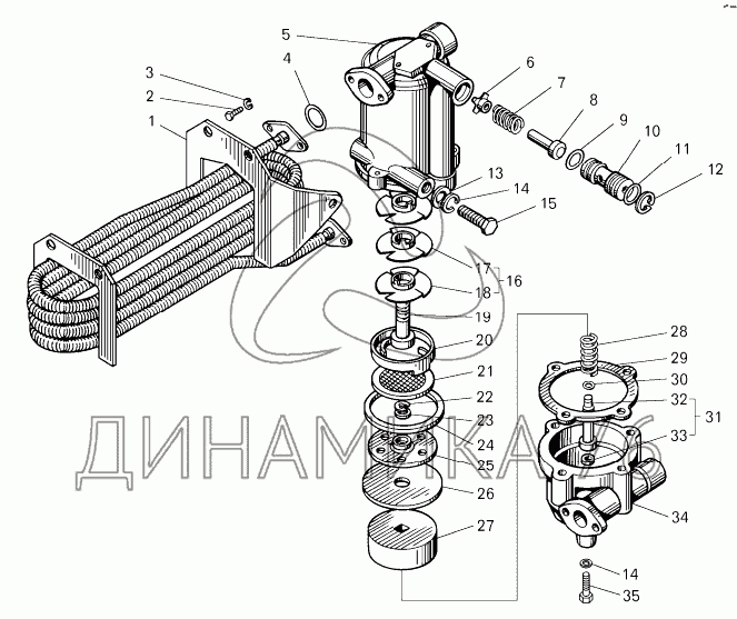 Перечень комплектующих от Водоотделитель на БелАЗ-7822