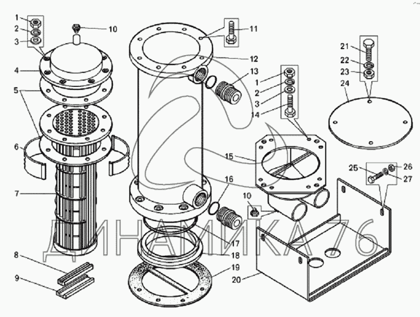 Перечень комплектующих от Теплообменник водомасляный и его установка на БелАЗ-7823