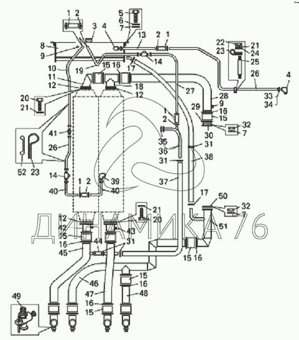 Схемы запчастей предназначены для справочных целей! Мы продаем не все запчасти от Трубопроводы системы охлаждения бульдозера БелАЗ-7823 на БелАЗ-7823, представленные в этом списке.