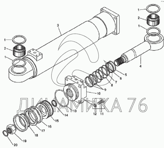 Перечень комплектующих от Цилиндр поворота на БелАЗ-7823