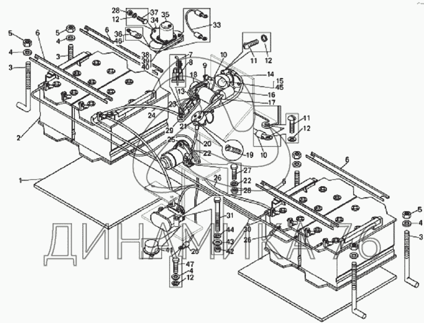 Схемы запчастей предназначены для справочных целей! Мы продаем не все запчасти от Установка аккумуляторных батарей на БелАЗ-7823, представленные в этом списке.