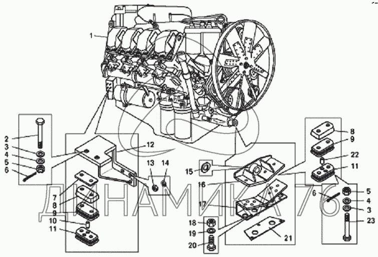 Схемы запчастей предназначены для справочных целей! Мы продаем не все запчасти от Установка двигателя на бульдозере БелАЗ-7823 на БелАЗ-7823, представленные в этом списке.